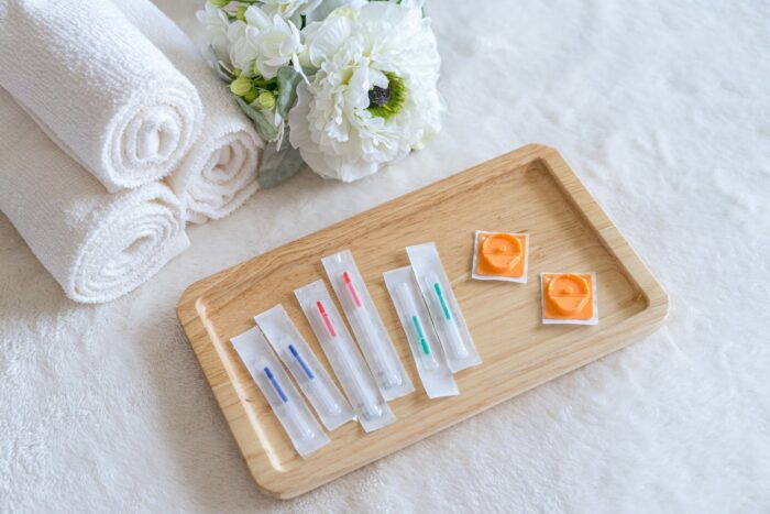鍼を肌に刺す行為を伴うため、感染症などのリスクを防ぐ必要があります。まず、一度使用したら廃棄する使い捨ての鍼を使用しているかを確認してください。